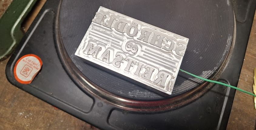 For a test print, I heated the metal stamp on a hot plate. It has some crude temperature regulation, so it is not difficult to control the temperature.